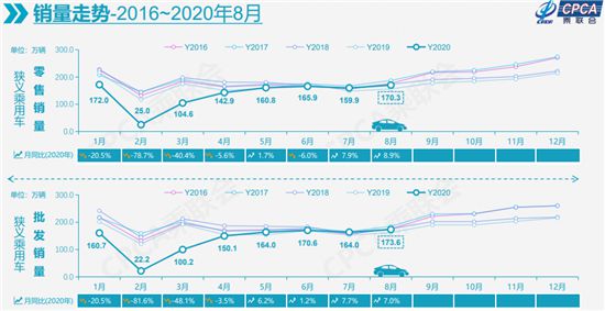 昨日(9月8日),乘用車(chē)市場(chǎng)信息聯(lián)席會(huì)發(fā)布數(shù)據(jù)顯示,8月,國(guó)內(nèi)狹義乘用車(chē)銷(xiāo)量達(dá)到170.3萬(wàn)輛,同比增長(zhǎng)8.9%,實(shí)現(xiàn)了自2018年5月以來(lái)的最強(qiáng)正增長(zhǎng)。今年1-8月的零售累計(jì)增速下滑15.2%,較1-7月累計(jì)增速提升3.3個(gè)百分點(diǎn),體現(xiàn)出行業(yè)的快速回暖態(tài)勢(shì)。