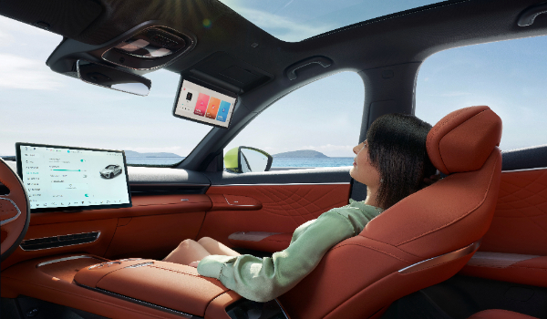 配置上,深藍S7搭載前排雙零重力按摩座椅,15.6英寸向日葵屏幕具有左右各15°的旋轉功能。智能模式下,顯示屏隨場景偏轉,可實現迎送賓場景。副駕區(qū)域創(chuàng)新性配備12.3英寸超感智慧屏,可配合副駕零重力座椅的傾斜角度調整,方便副駕乘員以舒適的躺姿觀看屏幕播放內容,放松身心。除此之外,深藍S7還搭載高通8155芯片車機系統、AR?HUD全息式增強現實系統、3D全息人臉登錄等高價值配置。