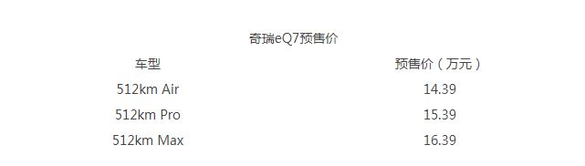 網通社從官方獲悉,基于中國首個鋁基輕量化平臺打造的首款車型奇瑞eQ7正式開啟預售,共推出3款車型,預售價14.39萬元-16.39萬元。