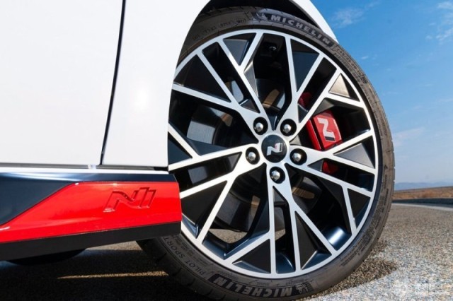 細節(jié)方面,伊蘭特N配備了規(guī)格為245/35 R19的雙色輪圈。同時,其制動卡鉗、側(cè)裙邊以及前后包圍處還采用了紅色涂裝,進一步突出了整車的運動氛圍。
