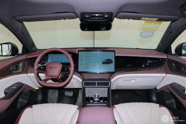 來到內(nèi)飾,海豹DM-i采用環(huán)抱式的座艙,而在設計上,海豹DM-i也同樣汲取大量海洋靈感,包括儀表臺、車門把手以及座椅縫線均有所體現(xiàn),此外,海豹DM-i采用了嵌入式全液晶儀表盤和懸浮式中控屏幕,更顯科技感。