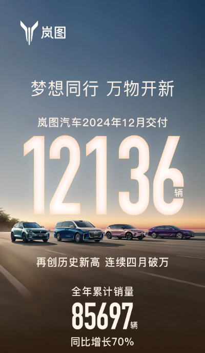 展望未來,嵐圖汽車CEO盧放表示:“2025年將推出4款以上全新或改款車,以更加完善的SUV、轎車和MPV產(chǎn)品布局,進(jìn)一步滿足廣大用戶的個(gè)性化需求。全新嵐圖夢(mèng)想家將以領(lǐng)先一代的產(chǎn)品力,成為絕對(duì)爆款,夯實(shí)‘頂流’地位,同時(shí)嵐圖繼續(xù)打造更多爆款,全力沖刺全年20萬輛的銷量目標(biāo),為更多用戶提供持續(xù)、穩(wěn)定、靠譜的產(chǎn)品和服務(wù)。”