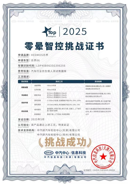 智控全場(chǎng)大有可能 示界06搭載行業(yè)首創(chuàng)的E-CLDRiv?智控系統(tǒng),實(shí)現(xiàn)了法式駕控基因在電動(dòng)時(shí)代的智能進(jìn)化。該系統(tǒng)傳承標(biāo)致雪鐵龍底盤(pán)調(diào)?;蚺c東風(fēng)汽車前瞻三電技術(shù)加持,以CLDR大師級(jí)冠軍底盤(pán)為技術(shù)基底,基于100+種中國(guó)典型道路工況大數(shù)據(jù),通過(guò)“雙百調(diào)教”及專業(yè)K&C(運(yùn)動(dòng)學(xué)與柔順性)動(dòng)態(tài)參數(shù)測(cè)試,建立中國(guó)電動(dòng)底盤(pán)性能新基準(zhǔn),以法式駕控精髓融合中國(guó)電動(dòng)科技,為消費(fèi)者帶來(lái)獨(dú)一無(wú)二的駕趣體驗(yàn)。 近期,在行業(yè)首次的暈動(dòng)仿生假人零暈智控挑戰(zhàn)中,示界06展現(xiàn)了優(yōu)異的駕控表現(xiàn)。中國(guó)汽車研究中心有限公司高級(jí)工程師趙博文在發(fā)布會(huì)現(xiàn)場(chǎng)公布測(cè)試數(shù)據(jù)時(shí)指出:“通過(guò)精準(zhǔn)的電機(jī)扭矩動(dòng)態(tài)分配、法系底盤(pán)調(diào)?;颍约按钶d的‘零暈智控’技術(shù)體系,示界06在六維駕控測(cè)試中表現(xiàn)出行業(yè)優(yōu)秀水平?!睖y(cè)試結(jié)果顯示,示界06完美實(shí)現(xiàn)了“6不”卓越體驗(yàn):簸路不顛、彎道不飄、加速不竄、減速不抖、駕乘不暈、長(zhǎng)途不累,為行業(yè)樹(shù)立了駕乘舒適新標(biāo)桿。