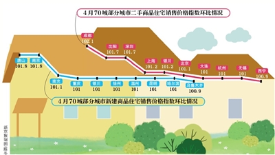 新房銷(xiāo)售價(jià)格環(huán)比上漲的有50城,比3月多12個(gè);二手房銷(xiāo)售價(jià)格環(huán)比上漲的有37個(gè),比3月多5個(gè)