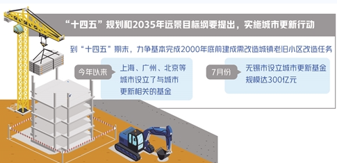 房企參與城市更新有望獲得更多支持?!笆奈濉币?guī)劃和2035年遠景目標綱要明確提出,實施城市更新行動。老舊小區(qū)改造是城市更新的重要內容之一,我國提出,到“十四五”期末,結合各地實際,力爭基本完成2000年底前建成需改造城鎮(zhèn)老舊小區(qū)改造任務。住房和城鄉(xiāng)建設部有關負責人曾表示,鼓勵房地產(chǎn)開發(fā)企業(yè)參與老舊小區(qū)改造。今年以來,多省市密集出臺相關舉措推進城市更新。除上海設立了城市更新基金以外,據(jù)報道,7月份無錫市也設立了城市更新基金,基金規(guī)模達300億元,專項用于投資無錫舊城區(qū)改造和城市更新項目規(guī)劃、建設、開發(fā)及運營等。此外,廣州、北京等城市也設立了與城市更新相關的基金。