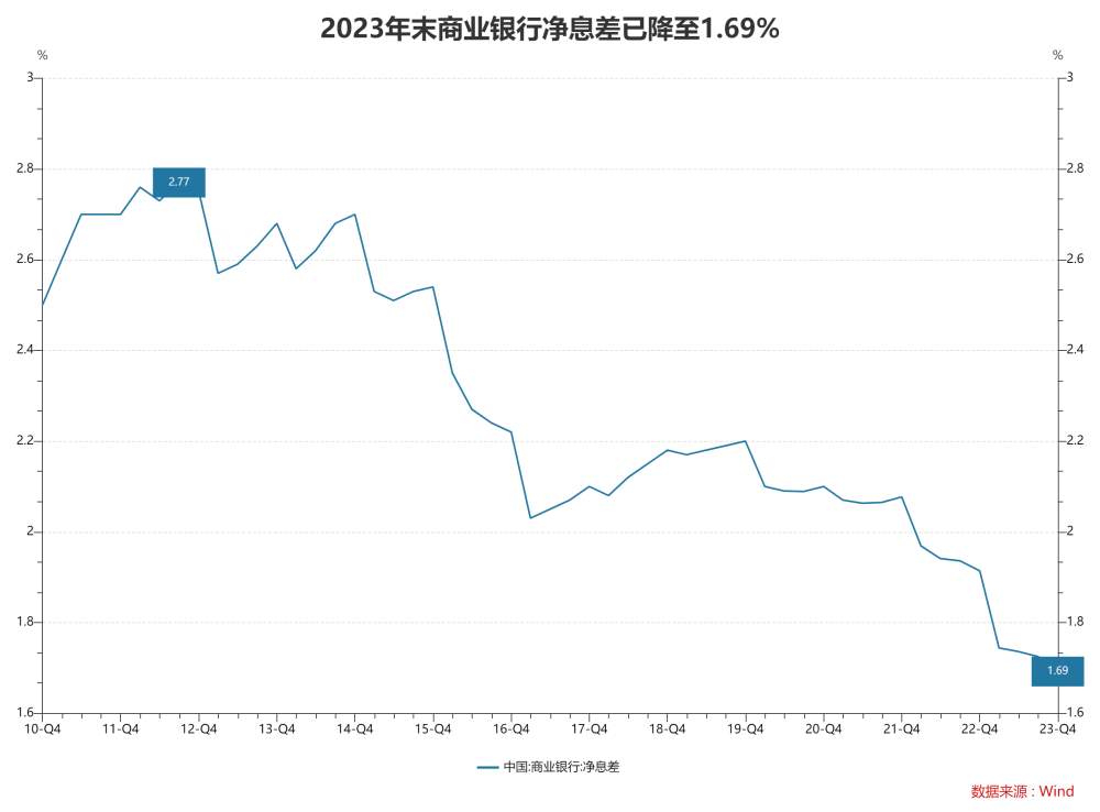 王青認(rèn)為,2023年末商業(yè)銀行凈息差已降至1.69%,首次跌破1.7%關(guān)口,且突破了《合格審慎評估實施辦法(2023年修訂版)》中自律機(jī)制合意凈息差1.8%的臨界值。
