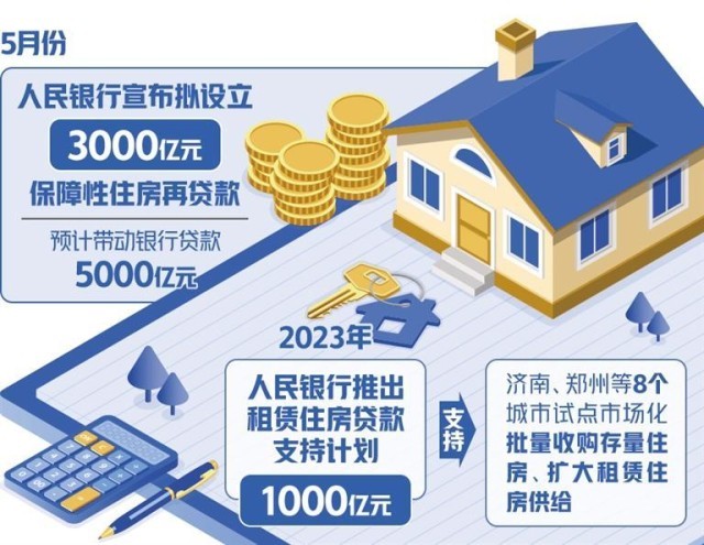 5月,人民銀行宣布擬設(shè)立3000億元保障性住房再貸款,按照“政府主導(dǎo)、市場化運(yùn)作”的思路,由中國人民銀行提供低成本再貸款資金,激勵(lì)21家全國性銀行機(jī)構(gòu)按照市場化、法治化原則,支持地方國有企業(yè)以合理價(jià)格收購已建成存量商品房,用作配售型或配租型保障性住房,預(yù)計(jì)帶動(dòng)銀行貸款5000億元。