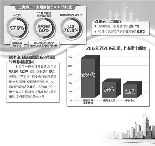 “營(yíng)改增方案出臺(tái)前,正在制定‘十二五’規(guī)劃的上海,遇到發(fā)展‘瓶頸’?!焙ū硎?,這在產(chǎn)業(yè)結(jié)構(gòu)上表現(xiàn)得尤為明顯。2011年,上海第三產(chǎn)業(yè)增加值占GDP的比重為57.9%,當(dāng)時(shí)北京接近80%。“對(duì)上海來說,要想謀求強(qiáng)勁的可持續(xù)發(fā)展,必須優(yōu)化產(chǎn)業(yè)結(jié)構(gòu),發(fā)展現(xiàn)代服務(wù)業(yè)、提高第三產(chǎn)業(yè)的比重。恰在此時(shí),營(yíng)改增帶來了契機(jī)。”胡怡建說。