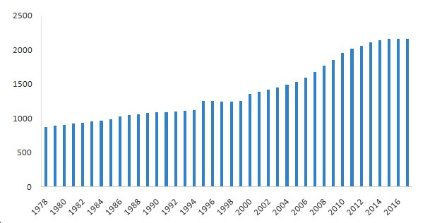 北京市1978-2017年常住人口(單位:萬(wàn)人)