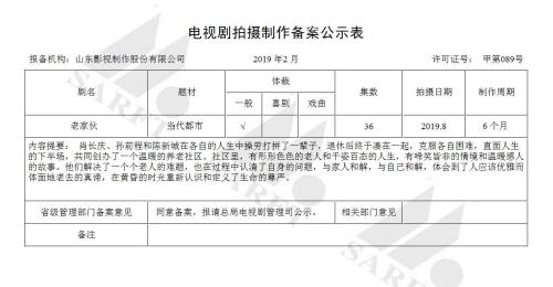 其中,山影將拍《老家伙》,備案顯示該劇36集,拍攝周期6個月。此前曾有消息稱,該劇將擬邀張國立、王剛、張鐵林擔(dān)綱主演。