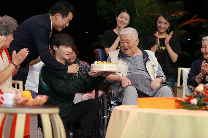 “最年輕的老黨員”牛犇、“黨的女兒”田華及秦怡、謝芳等藝術(shù)家都在《一切如你》中有著精彩演出。現(xiàn)場(chǎng),田華和謝芳還分別帶來了詩(shī)朗誦及歌曲表演。剛剛在醫(yī)院動(dòng)完手術(shù)的于洋,也坐著輪椅出席了影片首映,他很感激大家對(duì)自己的惦念,也希望大家能夠喜歡這部電影。再過不久就是于洋的生日,現(xiàn)場(chǎng),主創(chuàng)們也特別準(zhǔn)備了慶生環(huán)節(jié)。作為當(dāng)天演員中年齡最小的一個(gè),張藝興還偷偷為前輩買了蛋糕,祝福老人健康長(zhǎng)壽。