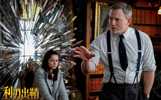 《利刃出鞘》劇照,克雷格扮演的私家偵探布蘭科(右)。