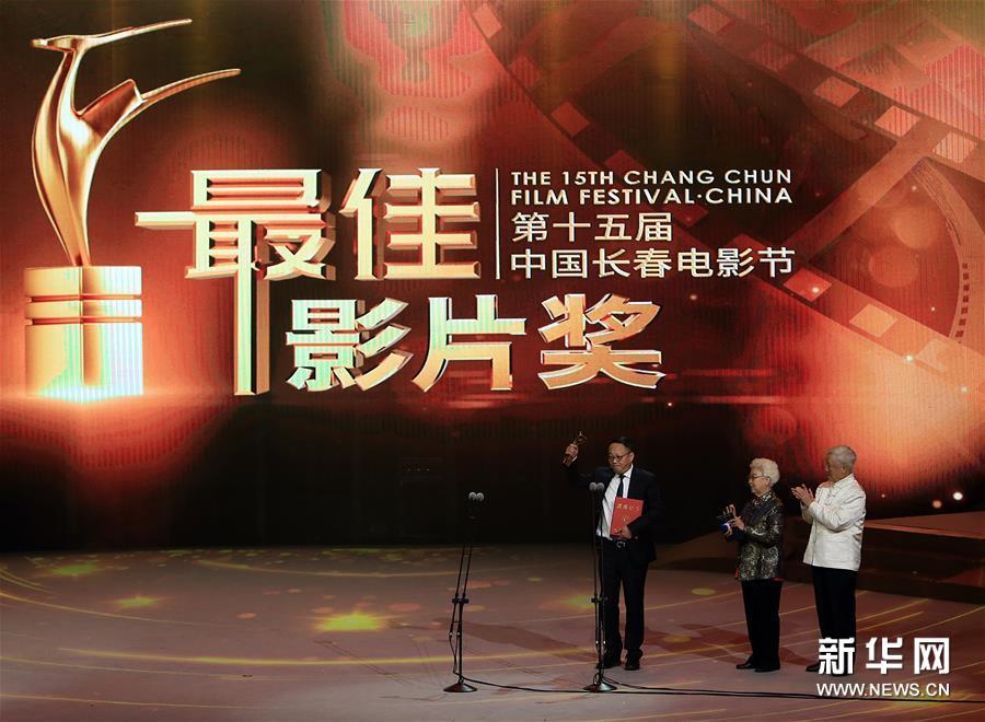 9月10日,獲得最佳影片獎的《我和我的祖國》影片總出品人傅若清(左)出席頒獎典禮。 當日,第十五屆中國長春電影節(jié)頒獎典禮在吉林長春舉行。電影《春潮》獲得金鹿獎評委會大獎,電影《春潮》導演楊荔鈉獲得金鹿獎最佳導演獎,電影《我和我的祖國》獲得金鹿獎最佳影片獎,電影《遠去的牧歌》男主角海拉提·哈木和電影《半個喜劇》女主角任素汐分獲金鹿獎最佳男演員獎和最佳女演員獎。 新華社記者 雒圓 攝
