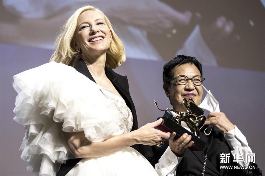 主競賽評委會主席凱特·布蘭切特為許鞍華頒獎。(圖片來源:視覺中國)