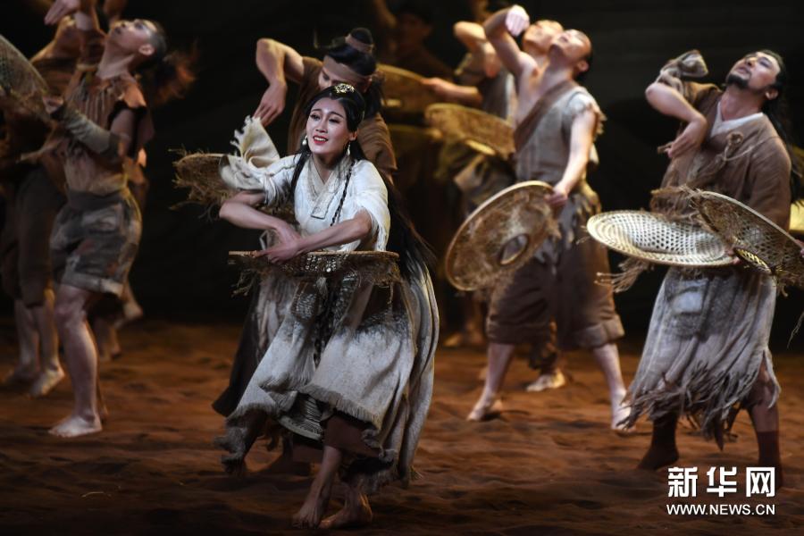 11月14日晚,演員在蘭州市黃河劇院表演舞劇《問道崆峒》。新華社記者 陳斌 攝