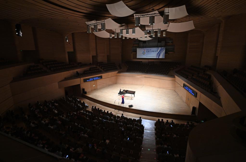 7月1日,天津歌舞劇院演員酈穎黛在演唱《洪湖水浪打浪》。新華社記者 趙子碩 攝