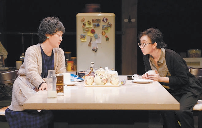 “《晚安,媽媽》沒有大的戲劇沖突,所有的矛盾都來自真實的生活,通過合情合理的人物關(guān)系和環(huán)環(huán)相扣的對話,去撥開日常生活之下翻滾的心。”唐燁形容,這是一部沒有借助所謂的“手段”的作品,100分鐘的演出真誠動人,靠的是扎實的舞臺實景和兩位演員牽動肺腑的表演——冰箱里塞滿食物,杯子盛著冒白氣的熱巧克力,水龍頭能擰出自來水,沒有刻意的音樂和效果,整座舞臺如同真實生活的切面。演員需要在“做家務”的同時進行快節(jié)奏、高密度的對話,“手上不能停,但也不能攪戲,比如母女倆換沙發(fā)套的那一段,我們就練了很久很久?!碧茻钫f。