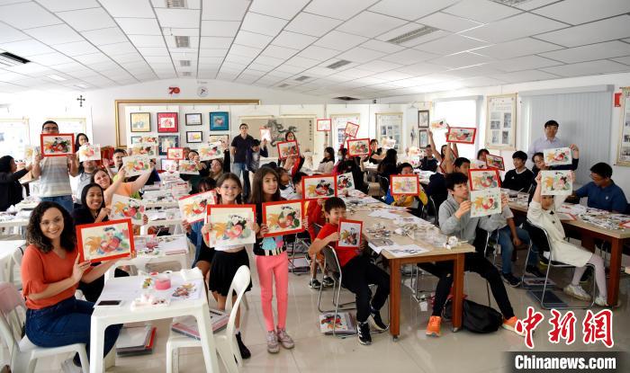 當?shù)貢r間9月10日,天津楊柳青木版年畫博物館、巴西圣保羅華僑天主堂中文學校聯(lián)合舉辦年畫傳承研習活動。圖為巴西圣保羅研習活動現(xiàn)場。中新社記者 林春茵 攝