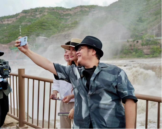 6月13日,二人轉(zhuǎn)戰(zhàn)臨汾吉縣,與同樣應(yīng)邀而來(lái)的導(dǎo)演寧浩相會(huì)于壺口瀑布,共同為家鄉(xiāng)文化代言、為山西文旅發(fā)聲。身為臨汾人,卻是第一次來(lái)到壺口瀑布,被這座有“黃河心臟”之稱(chēng)的瀑布深深震撼的譚晶“秒變游客”,不停地與翻涌奔騰的黃河合影、自拍,感受家鄉(xiāng)山水的波瀾壯闊之美。