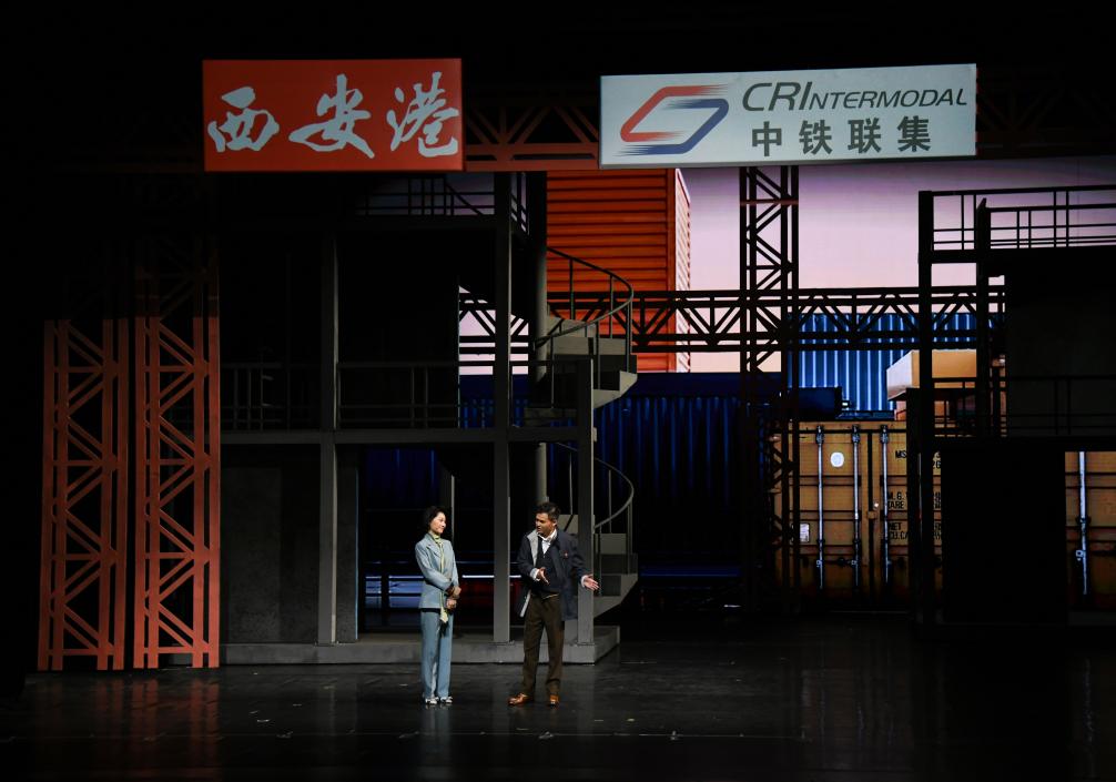 當(dāng)日,由西安話劇院原創(chuàng)排演的話劇《長(zhǎng)安號(hào)的笛聲》在西安首演。該劇講述了西安全力推動(dòng)中歐班列集結(jié)中心建設(shè),將一座四等小站建設(shè)成為“國際陸港”的奮進(jìn)故事。