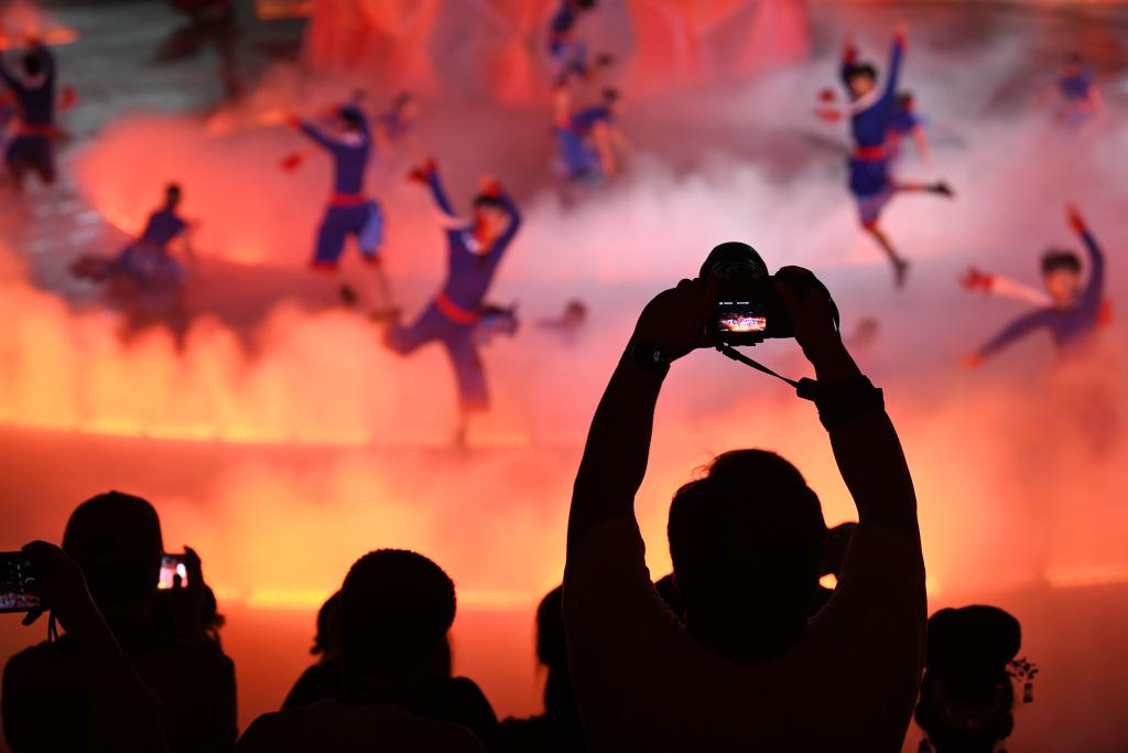 國(guó)慶將至,大型實(shí)景苗族歌舞詩(shī)劇《仰歐?!吩谫F州省黔東南苗族侗族自治州雷山縣大塘鎮(zhèn)仰歐桑劇場(chǎng)精彩上演。歌舞劇通過(guò)全息投影、燈光、舞美、大型裝置等實(shí)景布景,將苗族節(jié)日、習(xí)俗、服飾等民族元素搬上舞臺(tái),為觀眾呈上一臺(tái)文化盛宴。