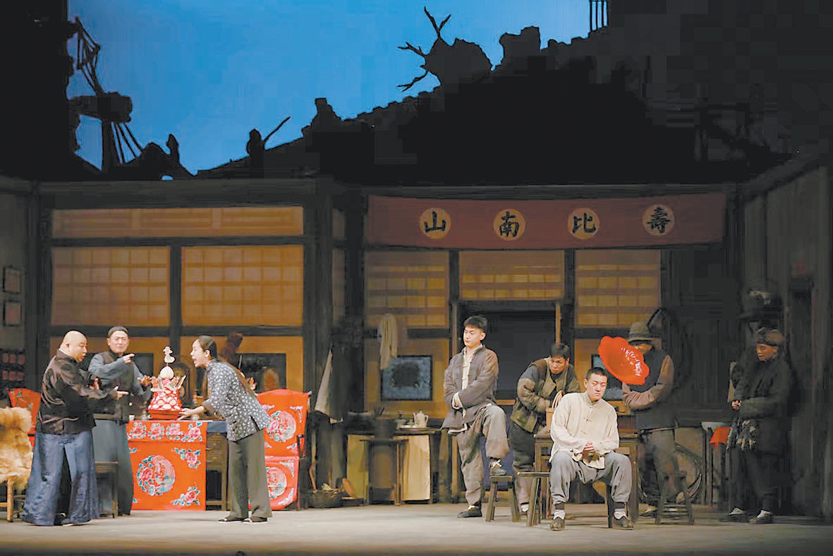 舞臺(tái)遠(yuǎn)處,老北京城門樓子的剪影橫亙天際;近處,木窗灰墻圍起一間極有年代感的平房;平房里,虎妞正在和父親劉四爺爭(zhēng)吵——這段經(jīng)典劇情出自家喻戶曉的《駱駝祥子》。