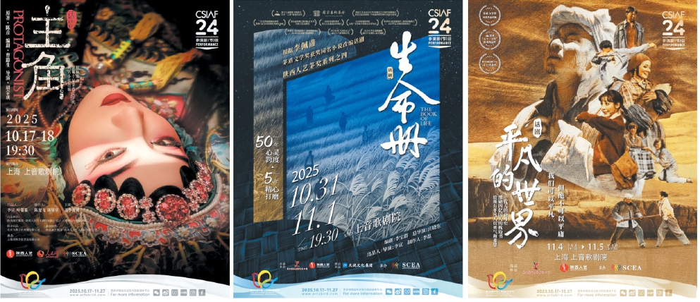 “茅獎(jiǎng)系列”作品《主角》《生命冊》《平凡的世界》《白鹿原》以及“陳彥三部曲”《星空與半棵樹》五部大戲?qū)⒃谏弦舾鑴≡毫料唷D為部分演出海報(bào)。