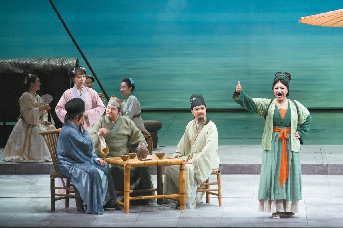 編劇曹路生借用清代李漁“立主腦、減頭緒、密針線”的創(chuàng)作理念大刀闊斧重構(gòu)敘事,刪減十余個(gè)支線人物,將敘事重心聚焦于趙盼兒、宋引章、孫三娘三位女性從錢塘到汴京的創(chuàng)業(yè)歷程。既延續(xù)關(guān)漢卿元雜劇《趙盼兒風(fēng)月救風(fēng)塵》的精神內(nèi)核,又汲取電視劇對(duì)女性情誼的現(xiàn)代詮釋,通過歌劇獨(dú)有的抒情性與戲劇張力,展現(xiàn)了中國女性“自尊、自愛、自立、自強(qiáng)”的精神內(nèi)核。導(dǎo)演蔣維國以“宋式美學(xué)的歌劇化重構(gòu)”為核心,巧妙調(diào)度舞臺(tái),演員舉手投足間皆融入宋畫的“日常優(yōu)雅”,將影視IP的動(dòng)人故事升華為具有普適價(jià)值的歌劇藝術(shù)表達(dá)。