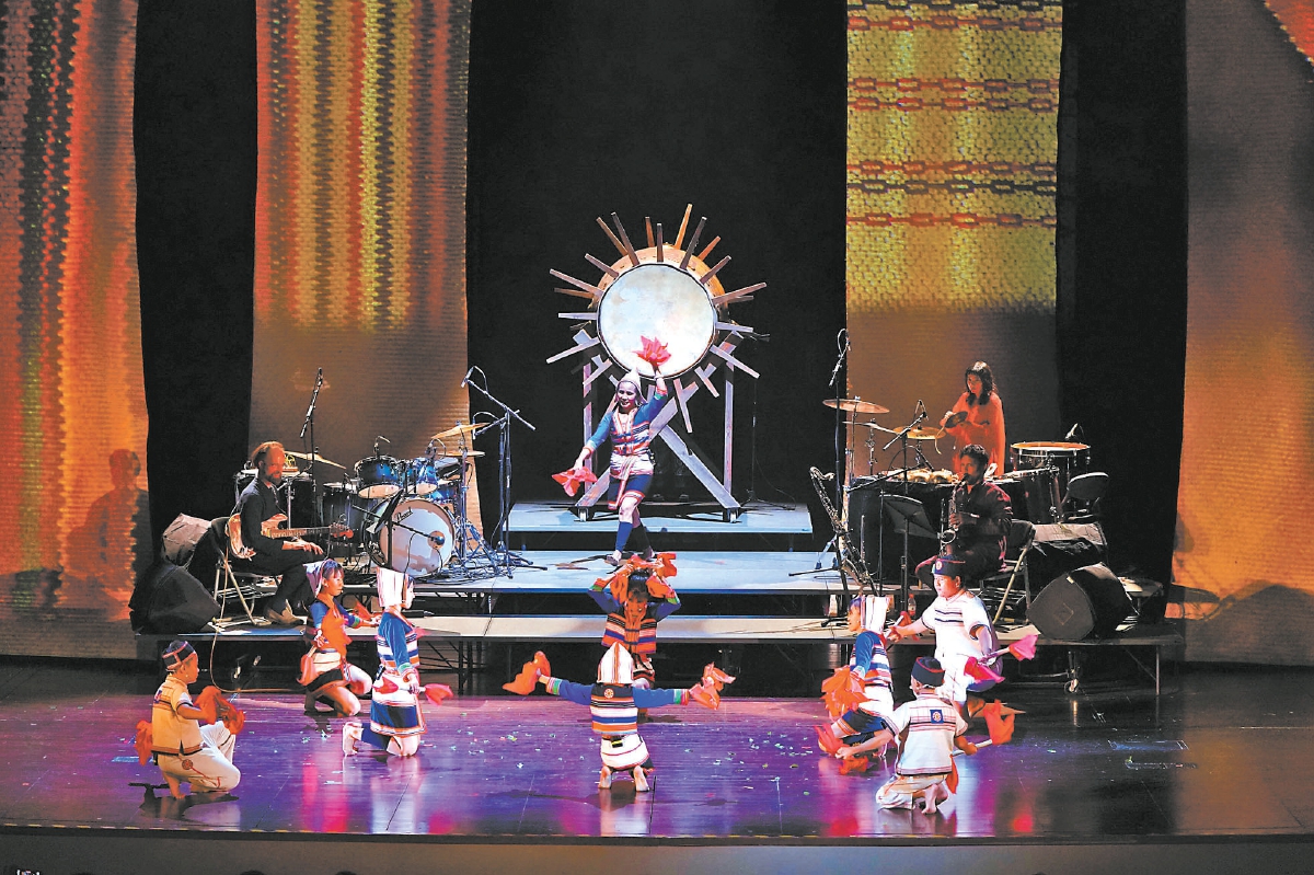 10月12日晚,一場將云南深山原始生命力融合跨越時空藝術想象力的演出登上北京舞臺。作為第二十八屆北京國際音樂節(jié)的重磅演出之一,由普利策音樂獎得主、華人作曲家杜韻傾力創(chuàng)作,北京國際音樂節(jié)與美國林肯中心聯(lián)合委約的音樂劇場作品《刻在森林的?!吩诒本┫矂≡菏澜缡籽?。來自云南西雙版納的非遺項目基諾族大鼓舞傳承人何桂英,帶領8位基諾族少年,在舞臺上敲響大山里特有的聲音。