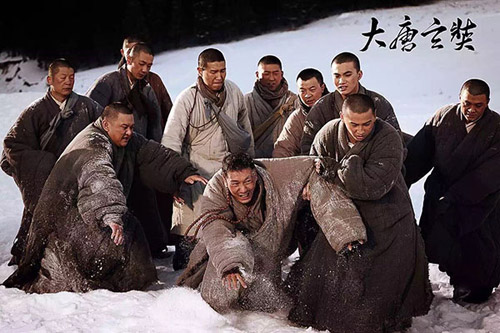1300多年前,玄奘法師用了19年完成了這段行走在信念之上的旅程:他遠(yuǎn)赴印度求法,而心中早已成佛?!洞筇菩省吩佻F(xiàn)了這一段傳奇之旅,玄奘西行中經(jīng)歷了各種磨難,甚至數(shù)度命懸一線:被當(dāng)成偷渡者,險(xiǎn)中西域邊陲的箭雨;徒弟石盤陀因被心魔驅(qū)動(dòng),竟對(duì)恩師匕首相對(duì)。廣袤無垠的沙漠中失去水源又迷失方向時(shí),差點(diǎn)命喪黃沙,這些都擋不住他鑒定的腳步。最終玄奘憑著內(nèi)心不變的信念,完成了這段不可能的旅程。桑馴華飾演的小和尚一直陪在黃曉明飾演的玄奘法師身邊,一切艱難險(xiǎn)阻都一起經(jīng)歷了,影片轉(zhuǎn)戰(zhàn)各地實(shí)景拍攝——玄奘自長(zhǎng)安,途徑哈薩克斯坦等國(guó),最終達(dá)到印度,每一個(gè)地區(qū)百姓的不同口音,不一樣的服裝、建筑風(fēng)格,不一樣的地理特征,配合每個(gè)地域特有的民族風(fēng)情的配樂,令人印象深刻。但對(duì)于黃曉明和桑馴華而言,在這大好風(fēng)光背后,卻都充斥著