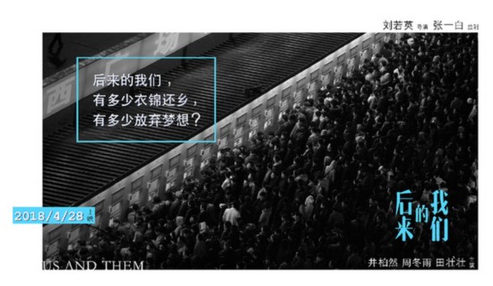 作為劉若英的電影導(dǎo)演處女作,同時“優(yōu)質(zhì)青年演員”井柏然和“金馬影后”周冬雨的傾情加盟,讓電影《后來的我們》未上映就備受關(guān)注。故事圍繞井柏然、周冬雨兩主人公在幾次春運過年回家期間發(fā)生的邂逅與愛情周折,體現(xiàn)出如今大都市漂泊奮斗的年輕人的情感和遭遇。電影目前已經(jīng)進(jìn)入后制階段,并宣布定檔4月28日,進(jìn)入五一檔。