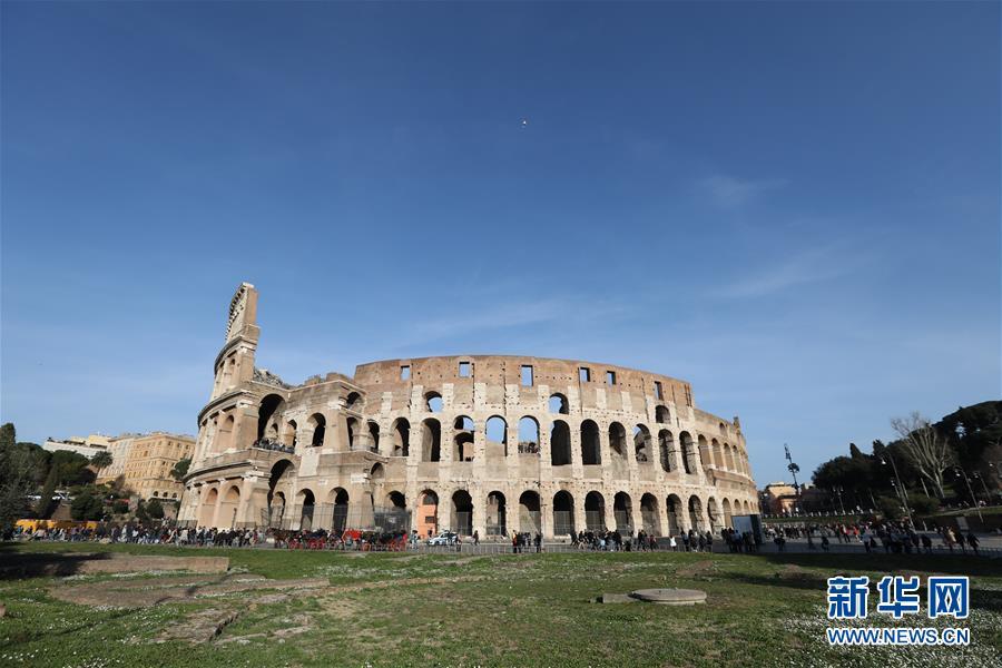 人們?cè)谝獯罄_馬斗獸場(chǎng)游覽。新華社記者 程婷婷 攝