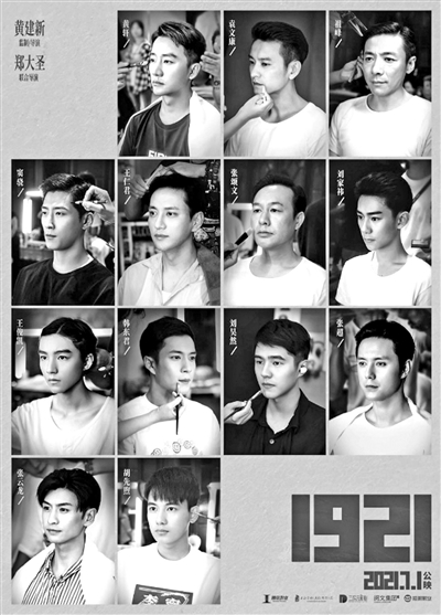 10月19日,由黃建新監(jiān)制兼導(dǎo)演,鄭大圣聯(lián)合導(dǎo)演的電影《1921》宣布將于2021年7月1日全國公映,并首次曝光了主演陣容——由黃軒、袁文康、祖峰、竇驍、王仁君、張頌文、劉家祎、王俊凱、韓東君、劉昊然等飾演中共一大代表。據(jù)悉,1921年,一大參會代表的平均年齡只有28歲,正是一群青春朝氣的熱血青年。為了更貼近真實人物,演員除了要年齡符合,更要“形神兼?zhèn)洹?。黃建新導(dǎo)演透露,為了選出樣貌和靜態(tài)上最像角色的演員,籌備時在辦公室兩面墻上貼滿了照片。