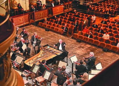 6月5日,維也納愛樂樂團在維也納金色大廳舉行新冠肺炎疫情解封后的首場音樂會。根據防疫規(guī)定,現場觀眾人數被限定在100名。新華社發(fā)