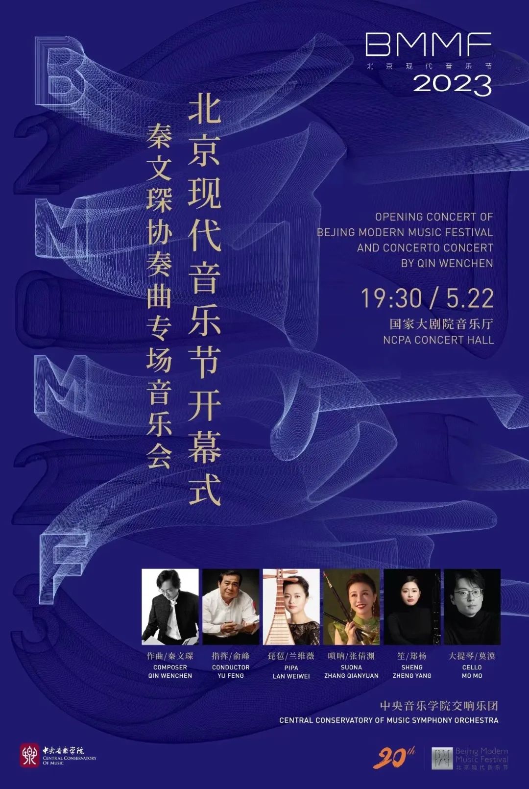 二十及冠,浴火向日!北京現(xiàn)代音樂節(jié)20華誕開幕音樂會將集中奏響當(dāng)今中國音樂創(chuàng)作翹楚秦文琛的4部協(xié)奏力作,屆時著名指揮家俞峰,將攜琵琶演奏家蘭維薇、大提琴演奏家莫漠、嗩吶演奏家張倩淵、笙演奏家鄭楊以及中央音樂學(xué)院交響樂團于5月22日亮相國家大劇院音樂廳。