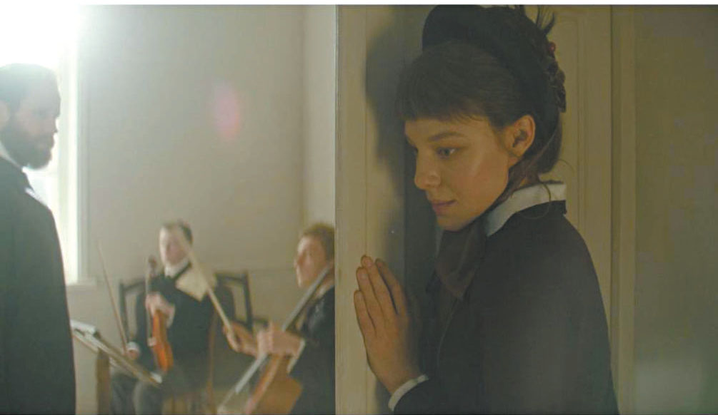 原本以為此片配樂會大量選用“老柴”原作的精彩樂段,誰知導(dǎo)演偏偏反其道行之,將柴科夫斯基本人的作品減之又減,只有家中琴房、音樂廳等為數(shù)不多的幾個場景,短暫地出現(xiàn)了老柴的作品片段。這顯然是導(dǎo)演熟讀作曲家生平及安東尼娜書信后的刻意為之。從史料中看,安東尼娜對于柴科夫斯基的那些偉大作品所知甚少,依她的天資,絕難與天才丈夫在音樂創(chuàng)作上擦碰出怎樣熱烈的火花。片中“老柴”音樂的缺席,亦象征了這場親密關(guān)系中對話與陪伴的不復(fù)在場。所謂“此時無聲勝有聲”,以“無”摹寫空空蕩蕩的愛情與婚姻,亦是再恰切不過。