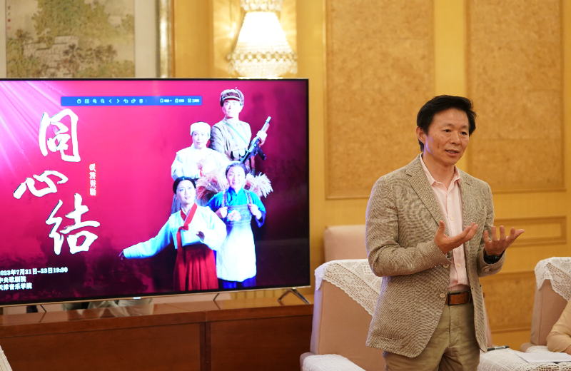《同心結(jié)》是一部紅色題材的經(jīng)典歌劇,1981年由田川、任萍擔(dān)任編劇,黃慶和、王云之、劉易民作曲,原中國(guó)人民解放軍總政治部歌劇團(tuán)創(chuàng)作首演。2023年是抗美援朝戰(zhàn)爭(zhēng)勝利70周年,天津音樂(lè)學(xué)院進(jìn)行了創(chuàng)作復(fù)排。此番上演的《同心結(jié)》是音樂(lè)會(huì)版歌劇,樂(lè)隊(duì)被設(shè)置在舞臺(tái)之上,80人的青年交響樂(lè)團(tuán)和110人的青年合唱團(tuán),全部由天津音樂(lè)學(xué)院師生班底組成。