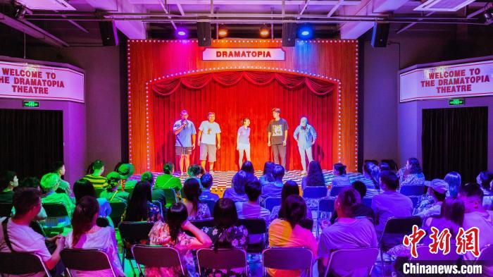 中新網(wǎng) 重慶9月11日電 題:互動(dòng)強(qiáng) 玩法多 素描喜劇在渝漸“出圈” 作者 黃維正 “百老匯”風(fēng)格的布景、深情的對(duì)白,短短幾分鐘,4位表演者便融合音樂(lè)劇、即興戲劇、話(huà)劇等多種形式,演繹出生活的悲歡離合。這種由演員在固定場(chǎng)景中,短時(shí)間內(nèi)圍繞一個(gè)特定“槽點(diǎn)”完成的喜劇表演,正愈發(fā)受到中國(guó)年輕人喜愛(ài)。 “粘什么?四個(gè)膝蓋!”舞臺(tái)上,一名觀(guān)眾當(dāng)即“叛變”,與陌生人“粘”在一起,讓小伙伴獨(dú)自一人體驗(yàn)被拋棄的感覺(jué)。“尷尬”的一幕瞬間點(diǎn)燃現(xiàn)場(chǎng)氣氛,引得大家開(kāi)懷大笑。周末夜晚,重慶寸灘國(guó)際新城時(shí)尚消費(fèi)區(qū)一劇場(chǎng)內(nèi),不斷傳來(lái)嘻嘻哈哈的笑聲,一場(chǎng)素描喜劇《最佳損友》正在這里上演。