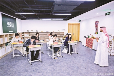 以第一站沙特阿拉伯為例,花少團(tuán)在出發(fā)之前前往沙特阿拉伯王國駐華大使館文化處,跟文化參贊阿蒙博士學(xué)習(xí)了阿拉伯語、阿拉伯文數(shù)字的讀寫以及日常實用的禮儀、著裝等注意事項。到達(dá)沙特后,花少團(tuán)體驗了當(dāng)?shù)氐奶厣朗?,來到了中國快遞的代表企業(yè)之一“極兔速遞”,沉浸式感受中國快遞用“中國智造”“中國速度”“中國服務(wù)” 解決沙特物流難題。