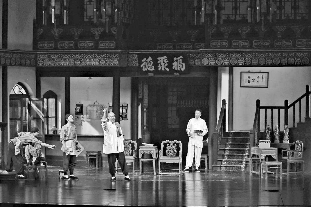 作為一部反映一百多年前生活的作品,導(dǎo)演閆銳認(rèn)為,要“找回歷史的記憶和時代的道”,在他看來,“這版中的人物除了鮮活之外,尊嚴(yán)也是著力要展現(xiàn)的,我們也是在這個主旨下深耕人物,把握每一個細(xì)節(jié),力求在經(jīng)典的基礎(chǔ)上展現(xiàn)出年輕人的狀態(tài)。這部作品要向觀眾呈現(xiàn)當(dāng)時的生活畫卷,演員們不僅要還原當(dāng)時的生活,更要用當(dāng)時的語言方式和韻律來表達(dá)?!贝溯喸傺荩瑢?dǎo)演顧威提出“要不丟人、不丟范兒、不丟對傳統(tǒng)的尊重”。于是,新一輪的塑造仍要在人物上下功夫,同時對于作品的理解也要有新體會?!叭鐒≈械慕Y(jié)尾‘天下沒有不散的筵席’這樣具有智慧和哲思的臺詞,為什么由修鼎新這個角色說出,帶有作者怎樣的思考,如何突出其中的哲思和況味,在這一輪的排演中,我們都進(jìn)行了重新的解讀和提升。”