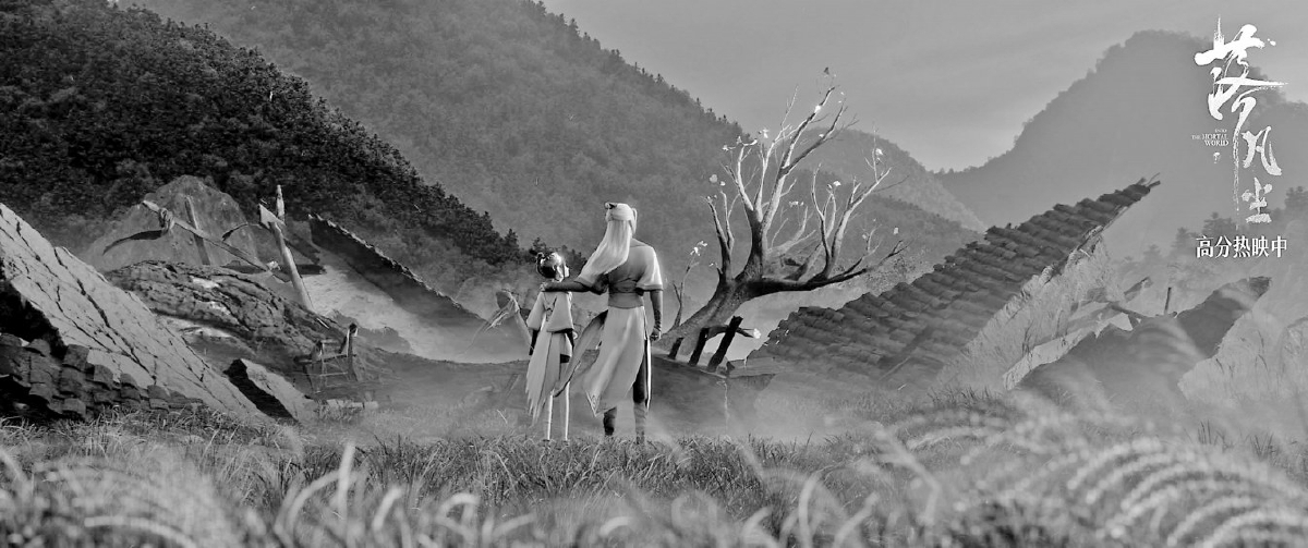 影片中在視覺美學(xué)上嘗試了嶄新的國風(fēng)設(shè)計,“我們想打造一個不同以往的神界氣質(zhì),全是白色的布、黑色的屋頂,一種特別素雅、特別極致的呈現(xiàn)。為了達(dá)到這個效果,我們就得不斷地嘗試,迭代出最好的效果。”