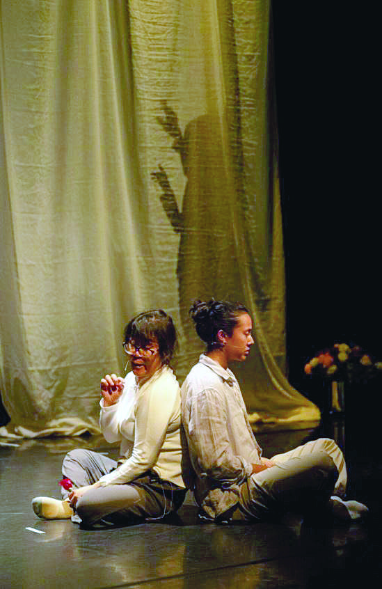 法魯克和余秀華合作詩歌舞蹈劇場作品《萬噸月色》,試圖把詩里的“陰影”意象轉(zhuǎn)化成某種新鮮的舞臺象征——讓詩人在光與暗交錯的空間里跳舞,在不同尺寸的“陰影”下舞蹈,表達不同生命階段對“陰影”的感受。(均受訪者供圖)
