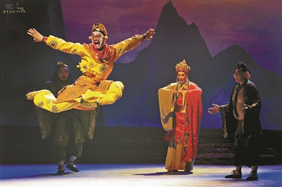 因此,排演這個故事需要在幻形的表象上做足功夫,使之從視聽角度令人信服;還要突出孫悟空這個人物,并展現(xiàn)師徒四人的不同性格,以及他們相親相愛但也有矛盾齟齬的關(guān)系。