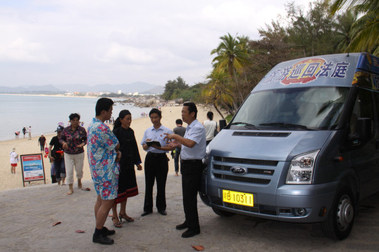 巡回審判車開進(jìn)三亞旅游景點(diǎn)