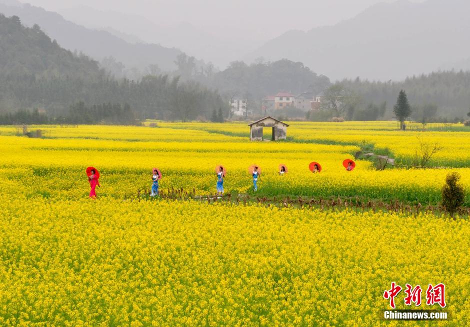 3月20日,江西省德興市??阪?zhèn)杜村婦女在田間花?!白咝恪?。當(dāng)日,江西德興市??阪?zhèn)杜村一批家庭婦女以千畝油菜花海為舞臺(tái),展示自己的才藝形象,希望宣傳家鄉(xiāng)的自然生態(tài)與人文歷史,擴(kuò)大旅游知名度和影響力。德興市海口鎮(zhèn)杜村交通便利,自然風(fēng)光優(yōu)美,村內(nèi)有歷史古跡和名木古樹。 胡敦煌 攝