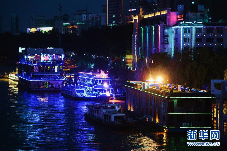 6月14日,一艘游輪從黃河蘭州段中山橋下穿過。自6月12日起,蘭州黃河游輪夏季夜航航線正式開通。據(jù)了解,作為黃河蘭州段水上旅游重點(diǎn)線路,該航線由蘭州市城關(guān)區(qū)蘭州港碼頭和白塔山碼頭始發(fā),每晚20時(shí)起開行,全程約6公里,運(yùn)行時(shí)長(zhǎng)50分鐘左右。游客可以乘坐豪華游輪欣賞黃河夜景,感受蘭州黃河風(fēng)情線別樣魅力。新華社記者 陳斌 攝