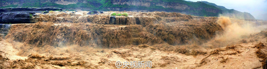 受上游強降雨和水庫放水影響,最近幾天,黃河壺口瀑布迎來伏汛,最大水流量達到每秒2600立方米左右,濁流滾滾奔騰而下,氣勢磅礴?。ㄑ胍曈浾呃钪?文豪)