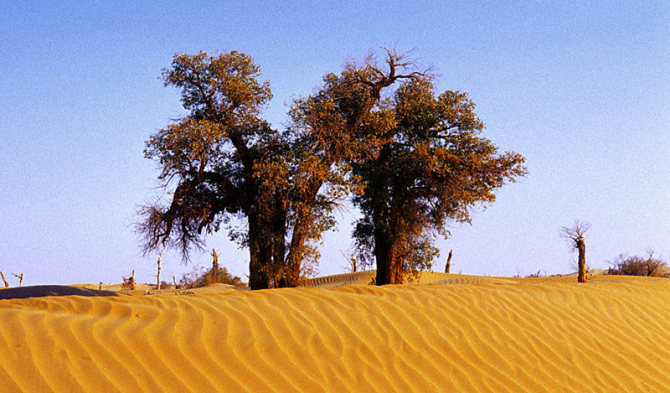 巴州旅游局局長(zhǎng)馬彥成說(shuō), 由于胡揚(yáng)具有驚人的抗干旱、御風(fēng)沙、耐鹽堿的能力,能頑強(qiáng)地生存繁衍于沙漠之中,因而也被人們贊譽(yù)為“沙漠英雄樹(shù)”。巴州輪臺(tái)縣羅布人村寨、羅布湖、及若羌縣的阿拉干沿途景色都非常迷人,希望游客到此賞游,將會(huì)領(lǐng)略到不一樣的美麗風(fēng)光。