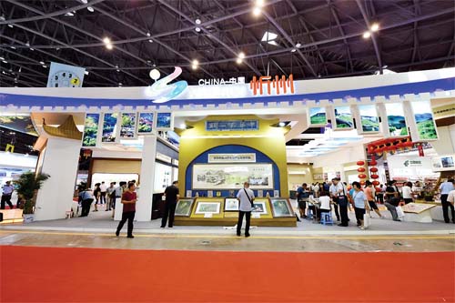 忻州展廳以“欣欣向榮·心靈之舟”為主題布展,展位在設計上將“五臺山”藍天白云與佛教建筑形成的獨特景色融為一體,從立體空間結(jié)構(gòu)、色彩氛圍渲染和建筑元素搭配等幾個方面著手,設計出獨具忻州特色的“佛教圣境”展廳。(本報記者 馮曉磊 攝影報道)