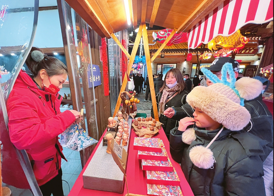 一月二十七日晚,忻州古城,游客正在選購民間手工藝品。春節(jié)期間,忻州古城推出了“中國年·在忻州”系列活動,傳統(tǒng)習俗與本地特色融合,廣大市民及游客體驗到了別具特色的年味。本報記者李兆民攝